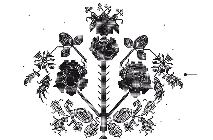 A digital reconstruction of the Karpathian Peacock motif. Transcoded via Digital Pointillism, the avian form is reduced to a binary structure, preserving its symbolic role as a guardian of the threshold between life and afterlife.